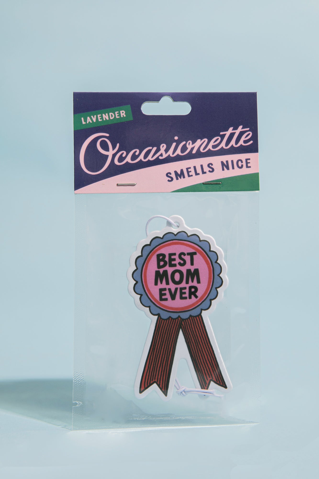 Keep your car fresh with a dash unique flair! This Occasionette-exclusive Best Mom Award air freshener is as fun as it is functional. Show yourself or your Mom love wherever you drive with this playful air freshener. A joyful little gift for moms, this air freshener keeps your space smelling sweet and spirited.