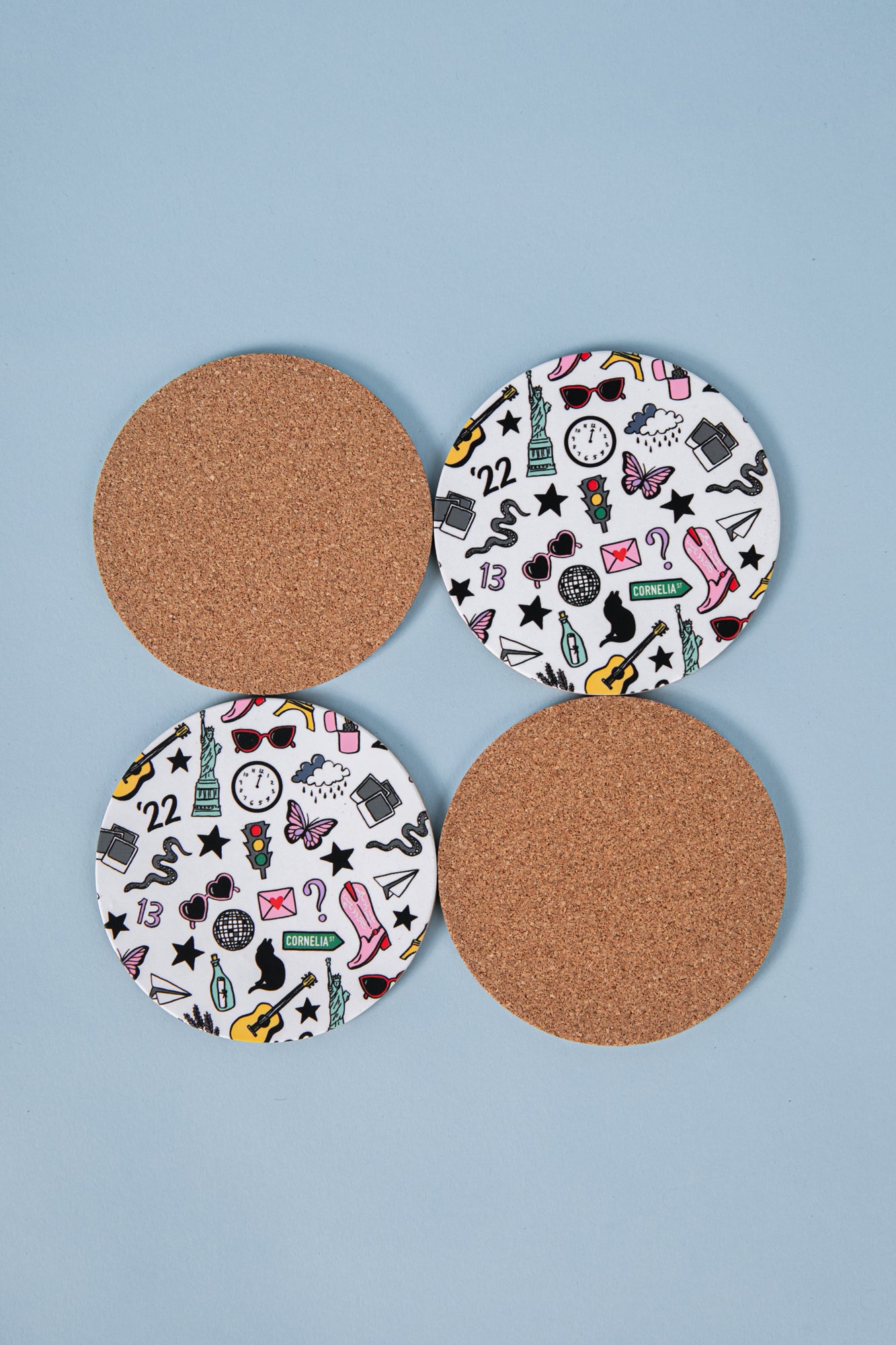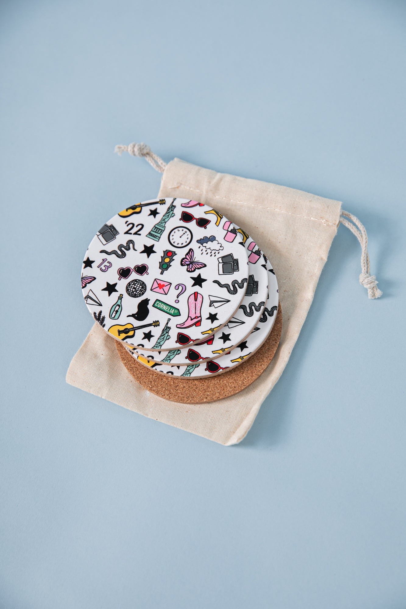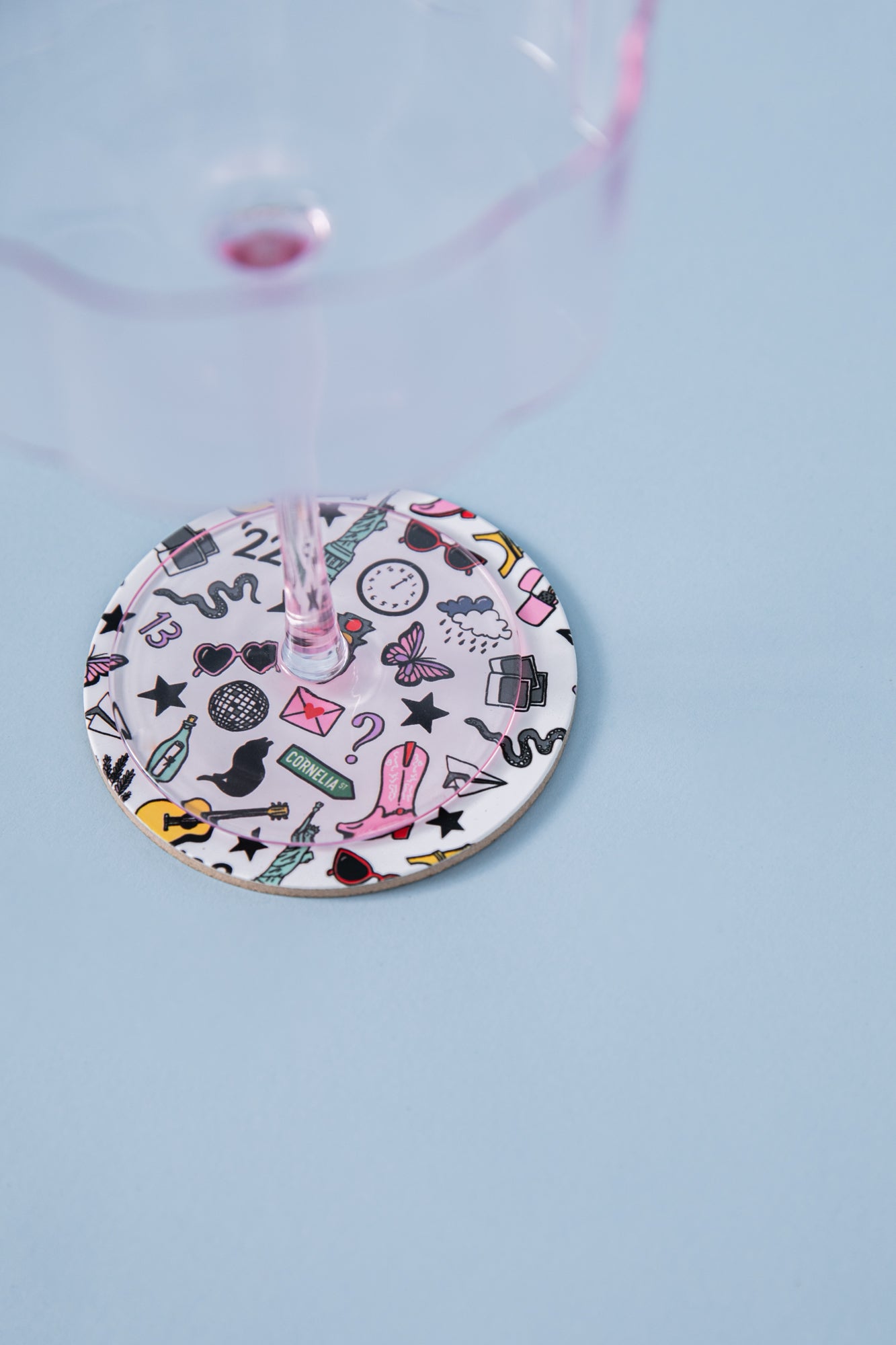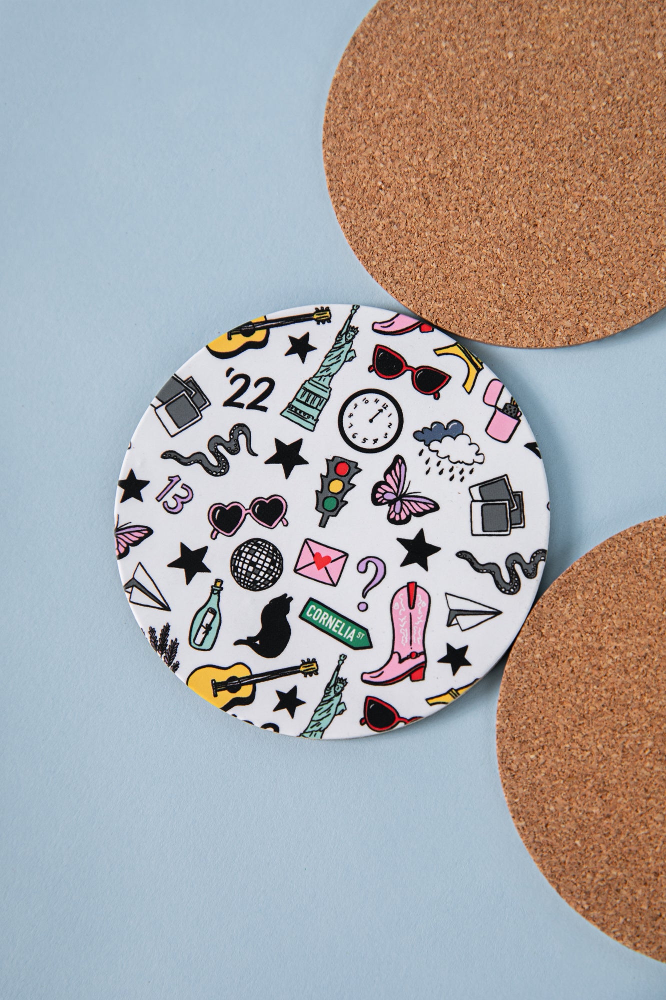 Keep your home surfaces safe from drinks with a dash of Swiftie flair! This Occasionette-exclusive Swiftie coaster set is as fun as it is functional. A joyful little gift for Taylor Swift fans, these coasters are the perfect touch to your home decor.