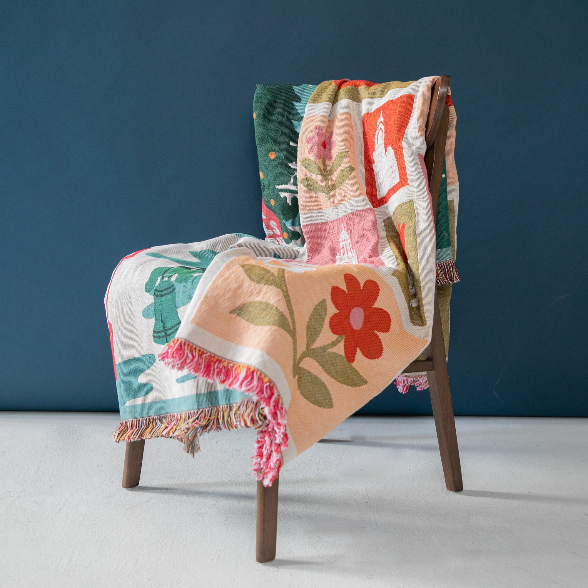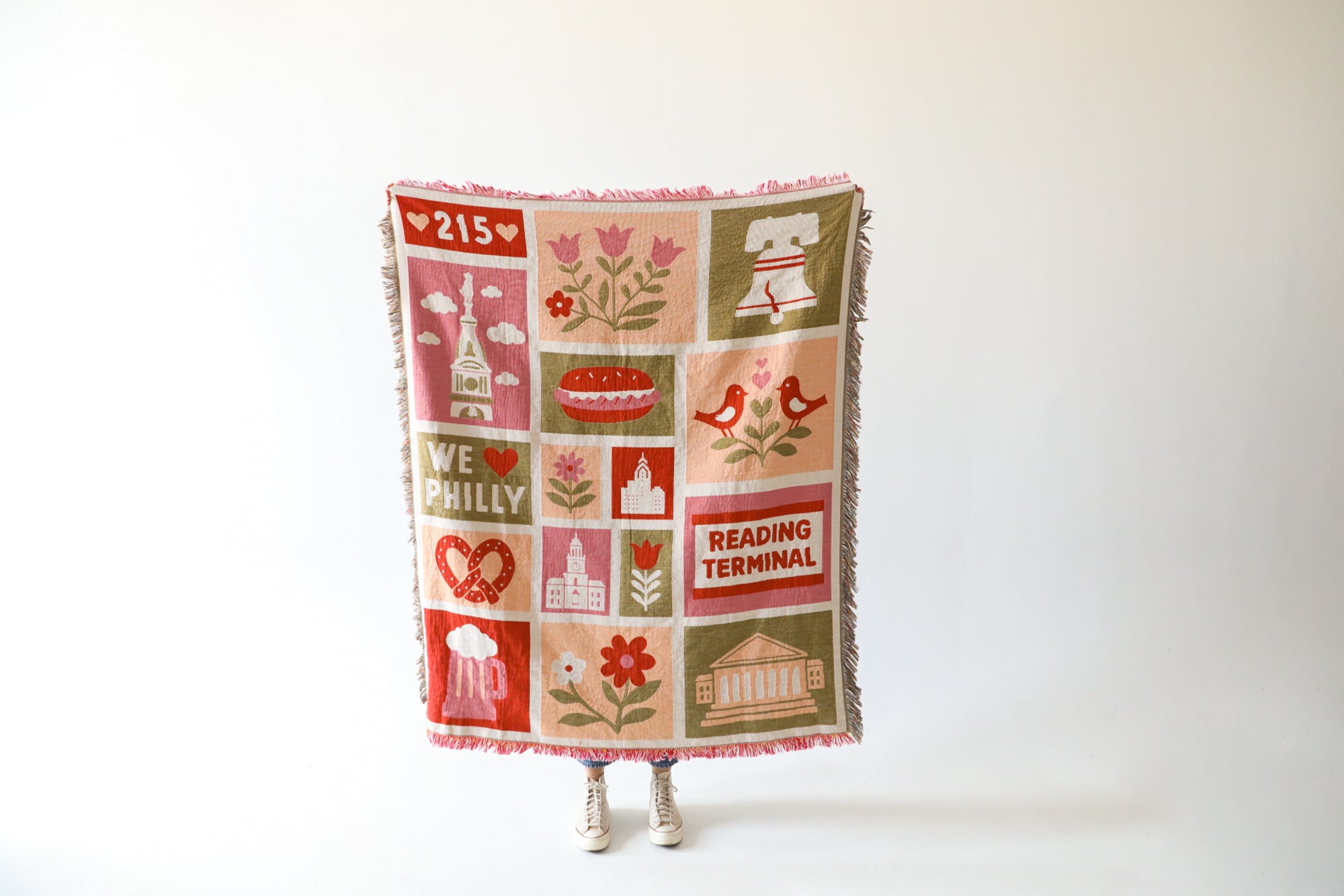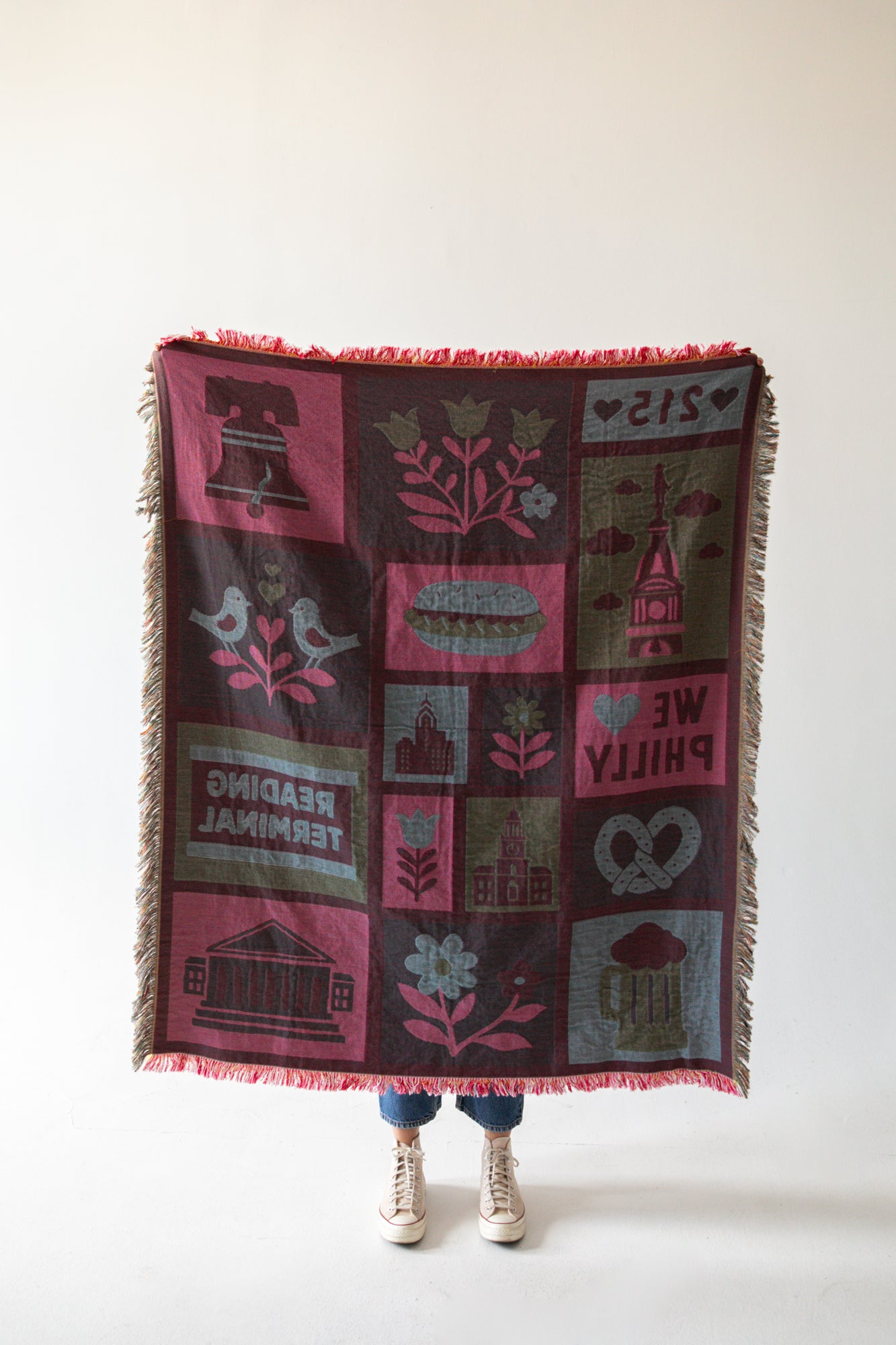 Cozy up with the city you love! This woven throw blanket features Occasionette’s exclusive Heart of Philadelphia design, celebrating neighborhoods, foods, and landmarks in a bold, colorful style. A functional keepsake, this throw blanket adds warmth and hometown pride to any space.