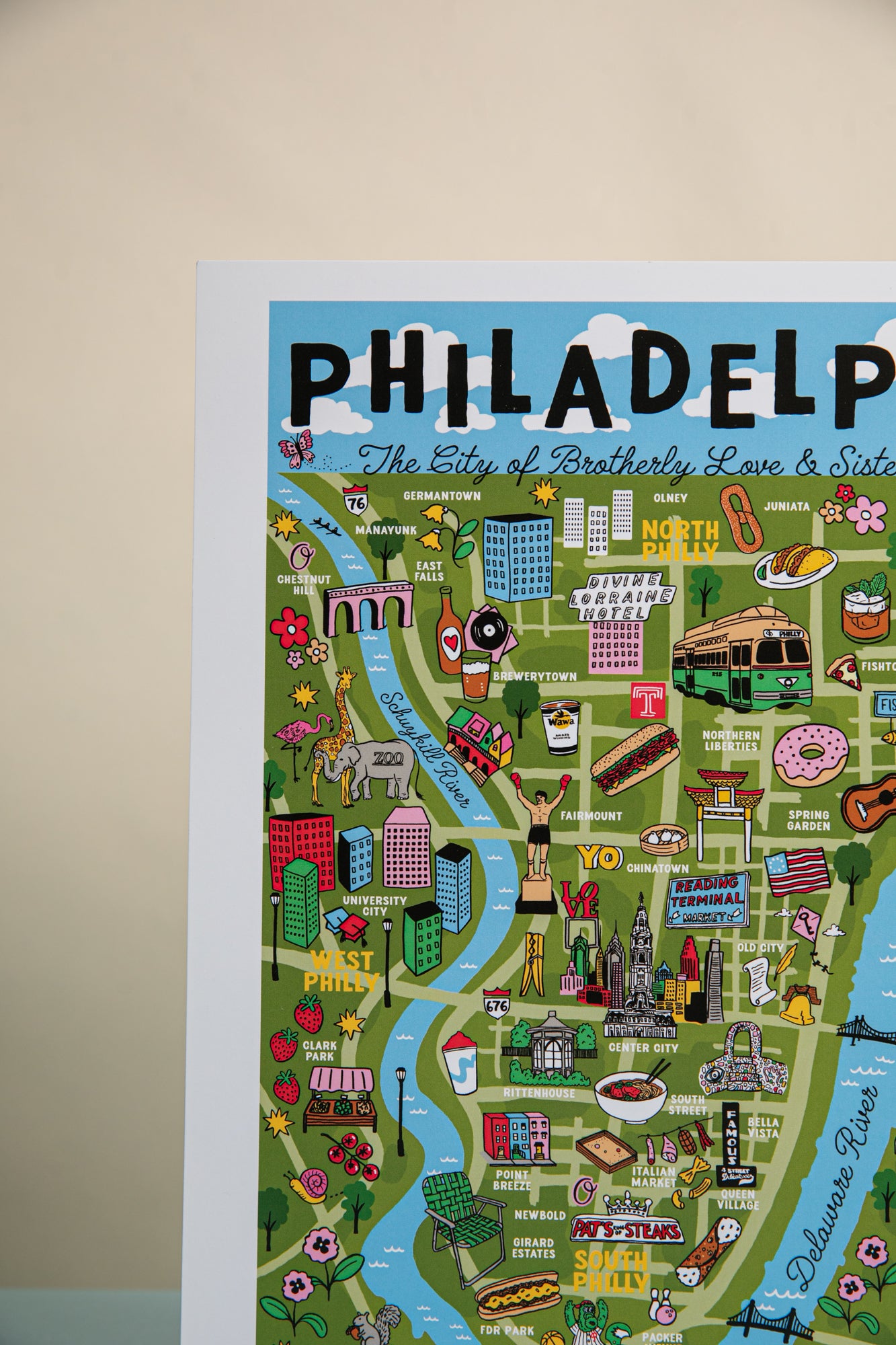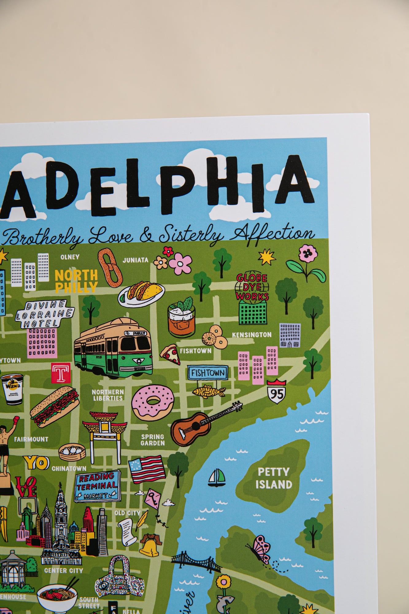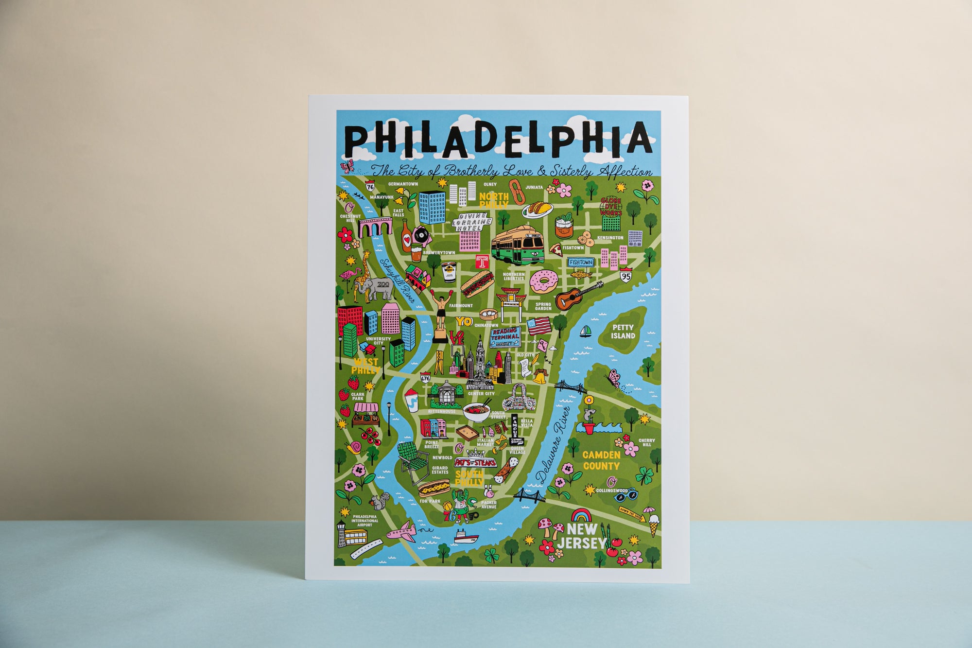 Celebrate the City of Brotherly Love with this exclusive 11"x14" Philadelphia map art print! Designed by Occasionette, add a pop of Philly charm to your walls with this cheerful map art print — the perfect gift for locals, students, or anyone who loves the city. From rowhomes to rivers, this map print captures the magic of Philadelphia.